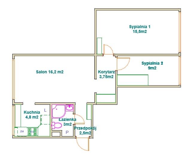 Sypialnia 2: szafa ok. 203 cm x 71 cm