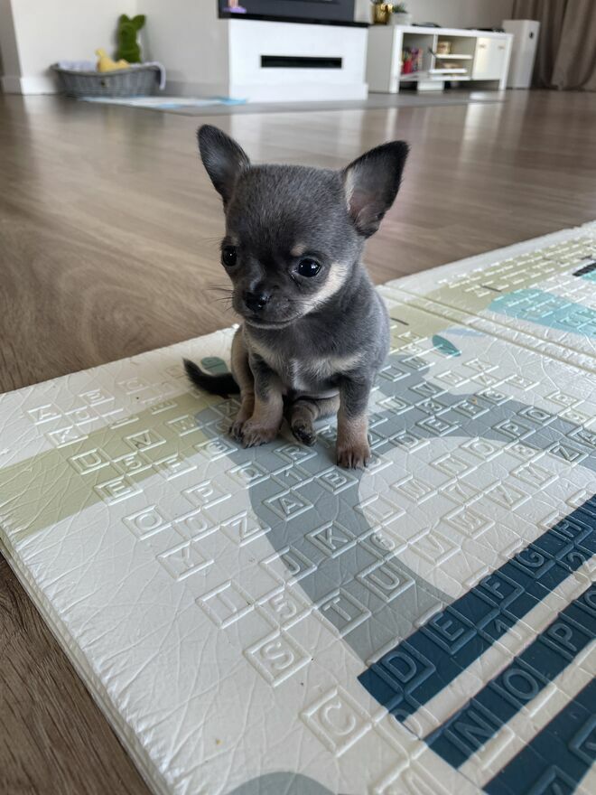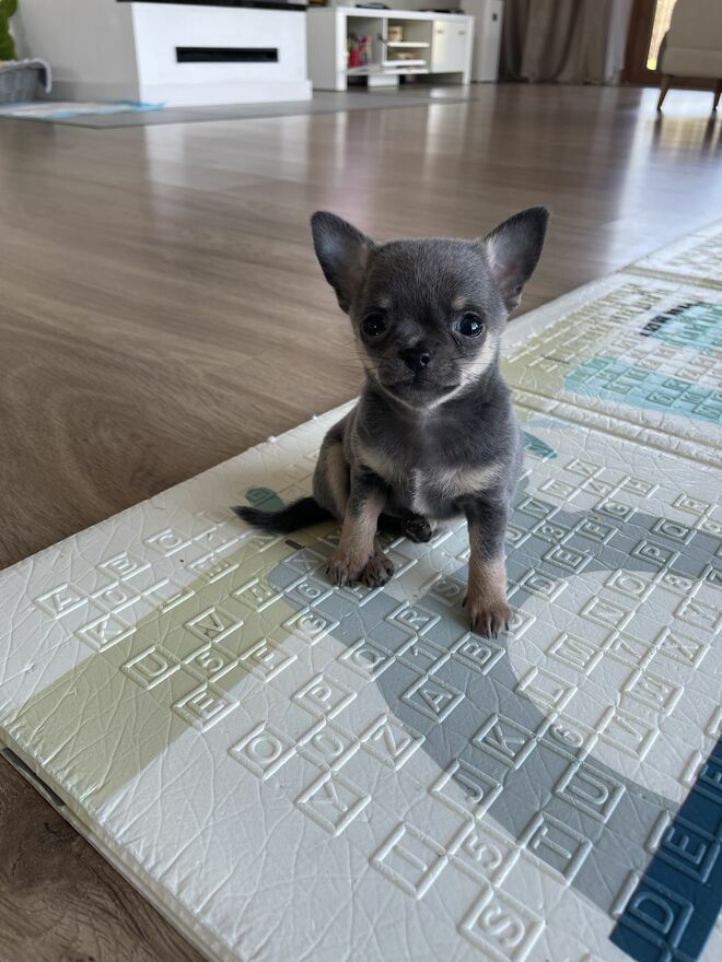 WitamOferuje Państwu pięknego pieska rasy Chihuahua w kolorze niebieskim.