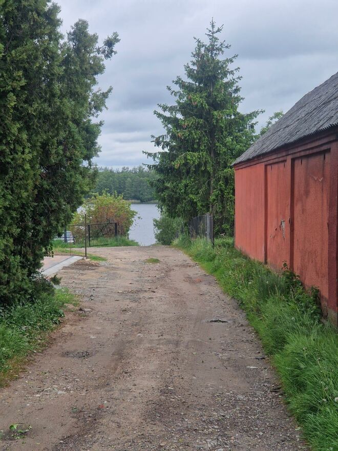 Dostęp do jeziora od strony drogi przyległej do działki, widok na jezioro z nieruchomości