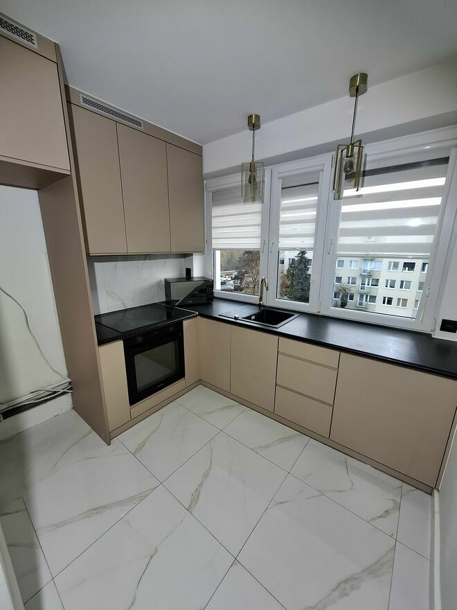 Mieszkanie przeszło kompleksowy remont i zostało wykończone w wysokim standardzie. Sprzedawane jest z pełnym umeblowaniem widocznym na zdjęciach, m.in.: