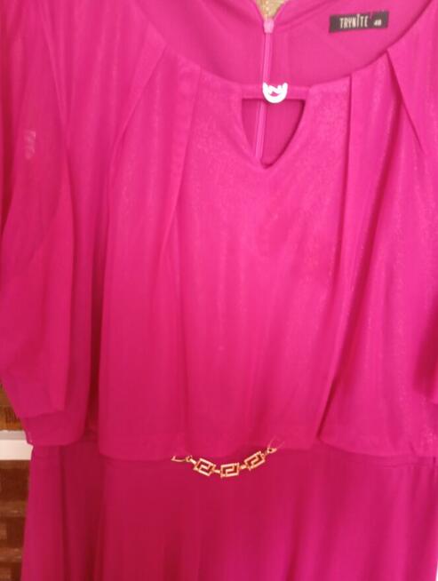 Śliczna sukienka ciemna roz tiul na wierzchu jest świecąca delikatnie...ubrana miałam 4 godz na weselu...z tyłu zamek i ...