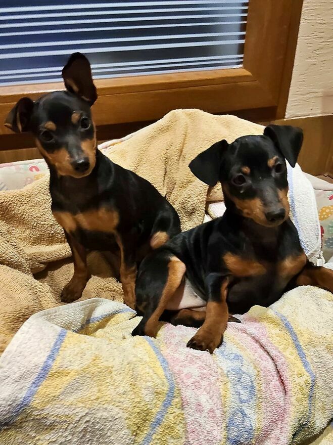 Dzień dobry:-)W naszej hodowli dnia 23.09.2025r. pojawiły się szczeniaki pinczera miniaturowego. Pieski są gotowe do zmiany domu. Mają aktualne szczepienia- zaszczepione trzykrotnie oraz odrobaczone. Również mają aktualne szczepienie na wściekliznę. Szczeniaki są wesołe,energiczne, mają kontakt z dziećmi. Będą dobrymi towarzyszami. Rodzice piesków są również z naszej hodowli. W dniu odbioru posiadać będą rodowód oraz wyprawkę. Zapraszam do kontaktu pod nr tel. 7 2 5 4 2 8 3 0 6 lub 6 0 5 7 2 0 8 2 3 :-)