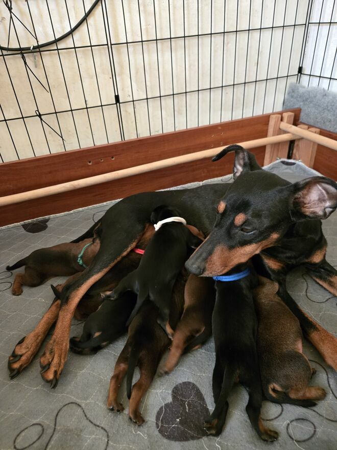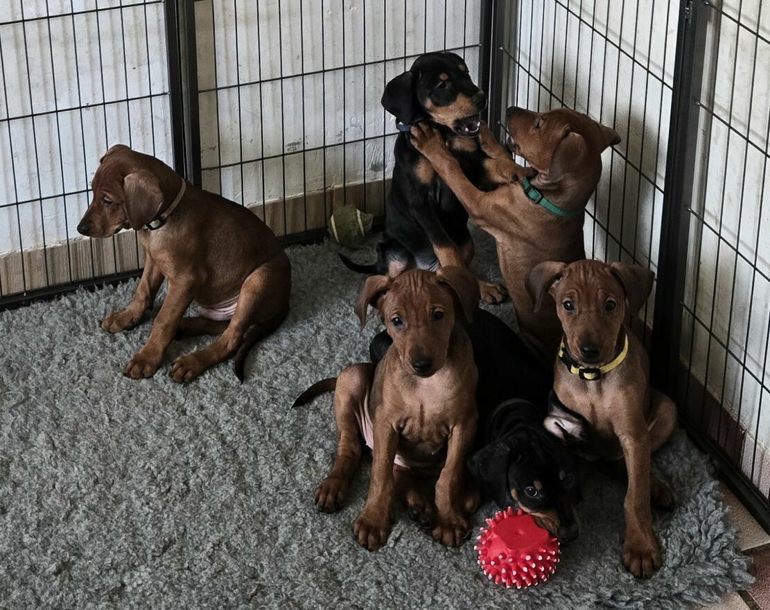 Z przyjemnością pragnę poinformować, że w mojej hodowli 7 stycznia 2026 przyszedł na świat miot Piczera średniego. Są 3 pieski czarne-podpalane, 3 pieski rude i 2 rude suczki.Rodzicami szczeniąt zostali: