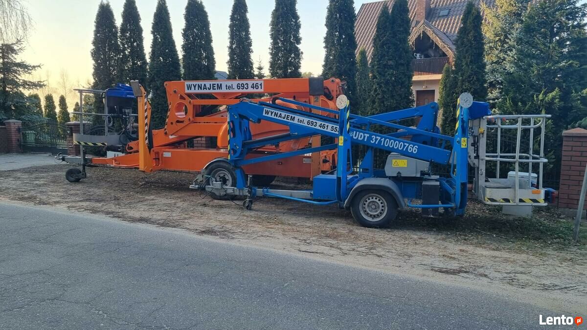 Firma Budner-Lift oferuje wynajem podnośników koszowych na przyczepie.Podnośniki o wysokości roboczej: 12 m, 17 m, 21 m, 22 m.