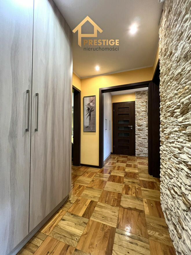 Mieszkanie jest w bardzo dobrym standardzie wykończenia. Ściany pokryto gładziami gipsowymi, a w wybranych miejscach ozdobnym kamieniem. Na podłogach parkiet oraz płytki. Okna PCV z roletami zewnętrznymi, co dodatkowo zwiększa komfort i bezpieczeństwo. Do mieszkania przynależy również piwnica.
