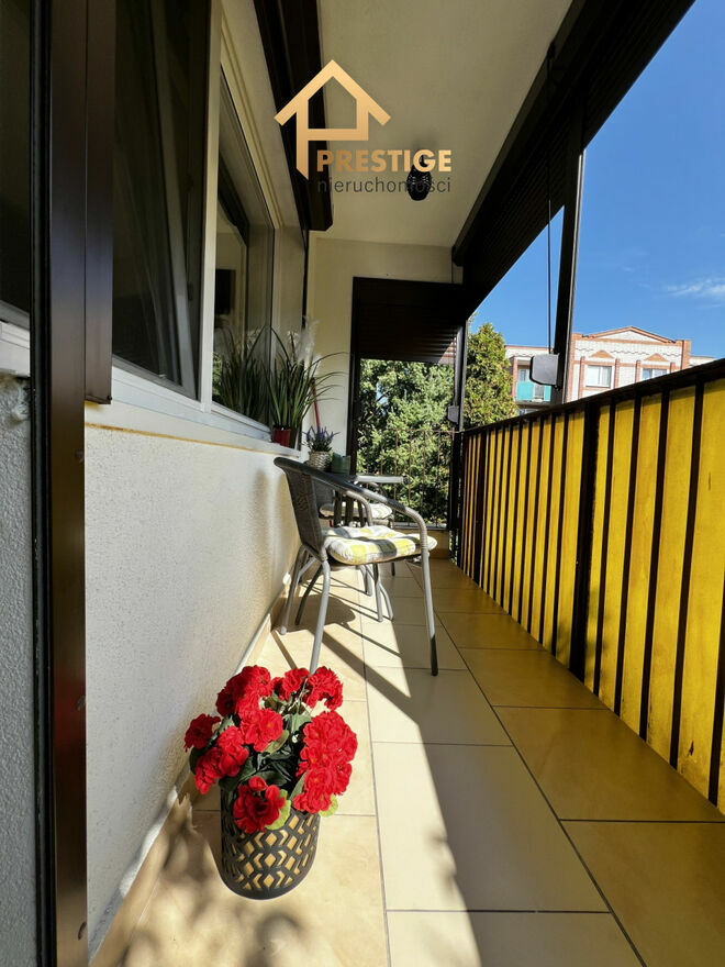 Z salonu jest wyjście na duży, słoneczny balkon z ekspozycją południową, dodatkowo osłonięty roletami. Mieszkanie jest dobrze doświetlone, wystawa okien na wschód i południe.