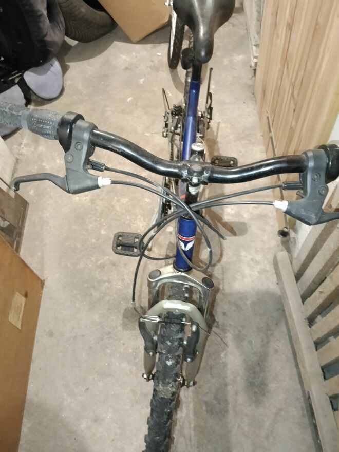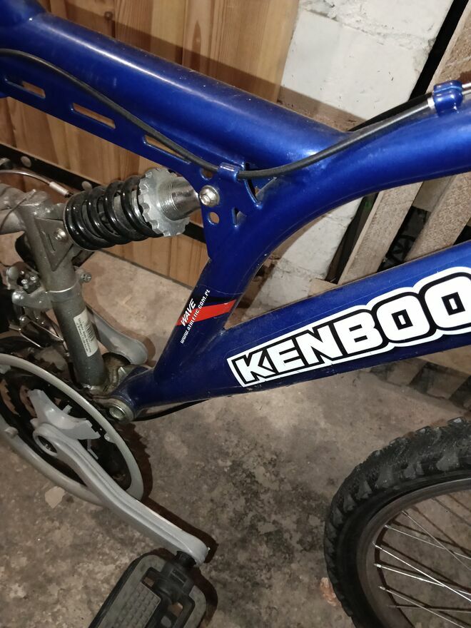 Rower górski (MTB) z pełną amortyzacją (full suspension).Rama: Aluminiowa, w kolorze niebieskim.