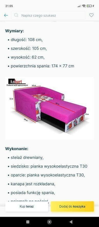 - Kategoria: Meble / Łóżka, wersalki i sofy