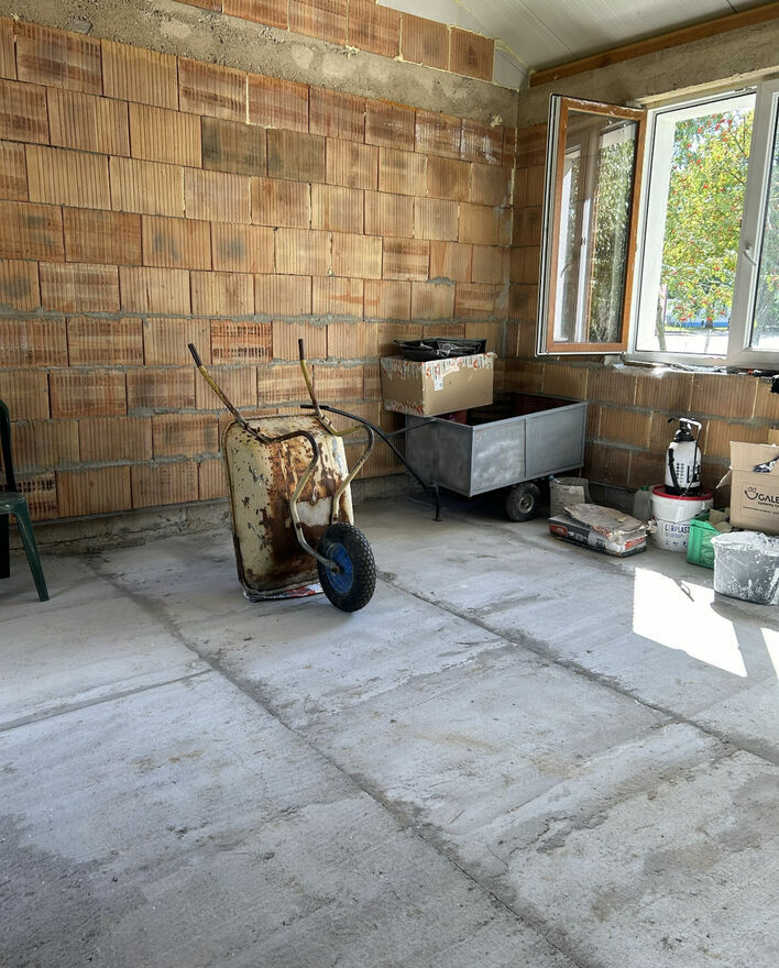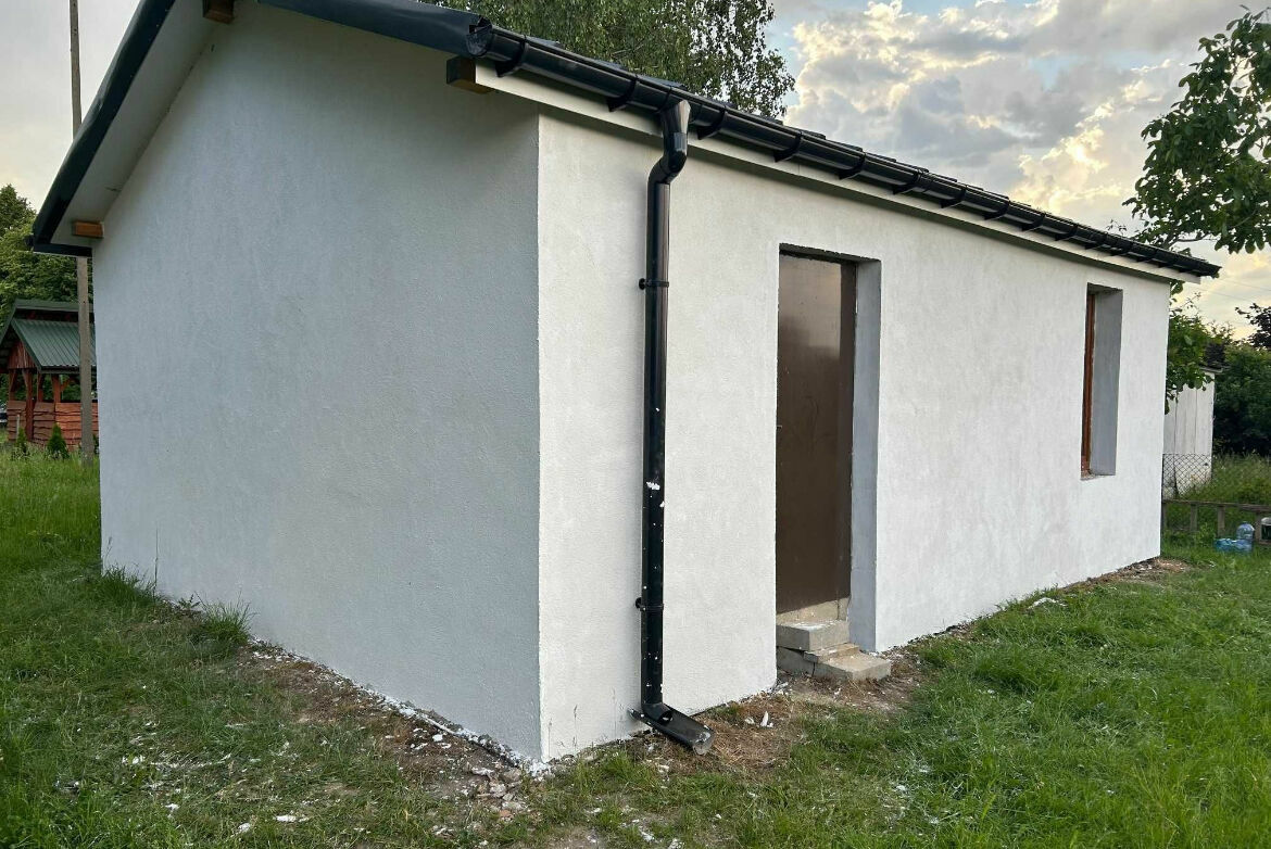 Domek został wybudowany z porothermu ocieplonego styropianem, z myślą o całorocznym użytkowaniu. Domek z zewnątrz całkowicie wykończony i wytynkowany.