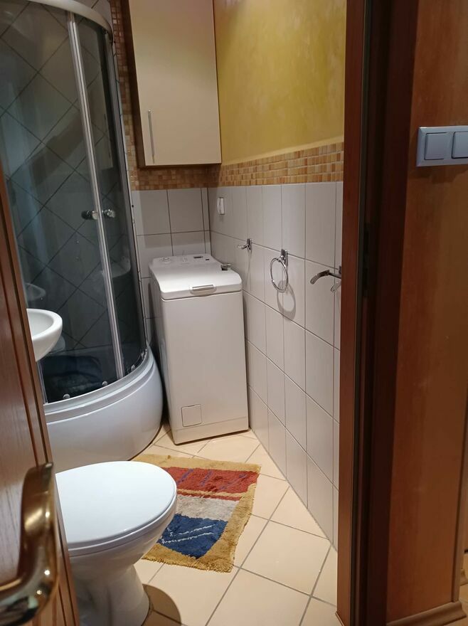 - na podłogach w pokojach terakota w łazience i w kuchni plus wykładzina podłogowa