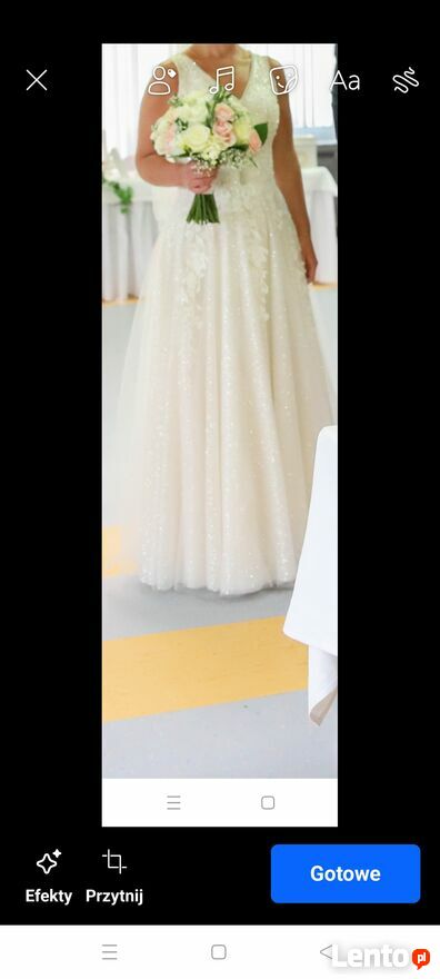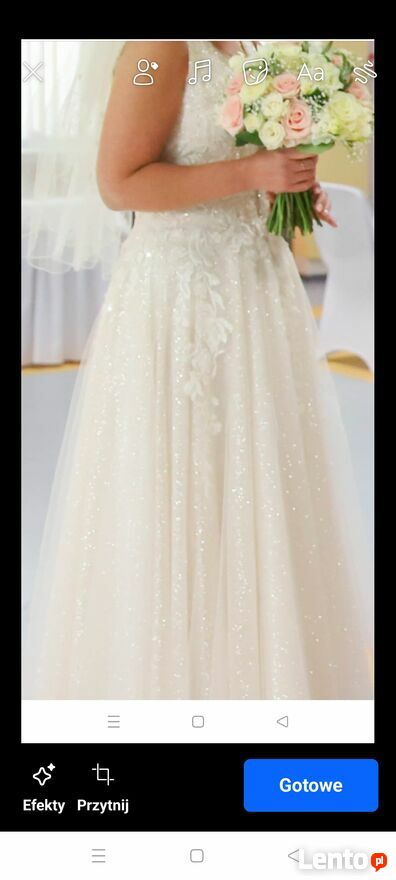 Sprzedam piękną sukienkę ślubną, idealna dla każdej przyszłej panny młodej. Klasyczny biały kolor, dodatkiem tiulu, lekko błyszcząca,doskonałe wykonanie.Rozmiar 34/36