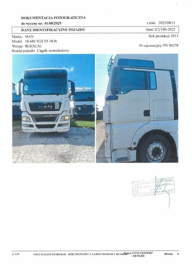 Syndyk masy upadłości PO1P/GUp-s/541/2025 sprzeda ciągnik siodłowy MAN.Model: 18.440 TGX E5 18.0t