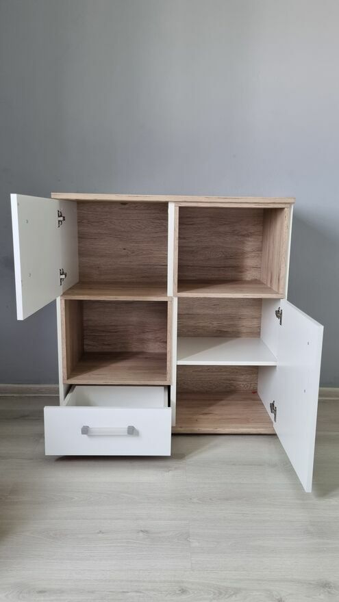- Układ: 2 drzwiczki (w wieks,ym otworze półka, szuflada 2 otwory;