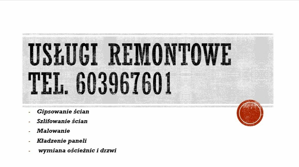 Wykonam usugi remontowe , potrzebujesz odnowic wnetrze domu , zadzwon 603 - pokaż numer telefonu -Krystian